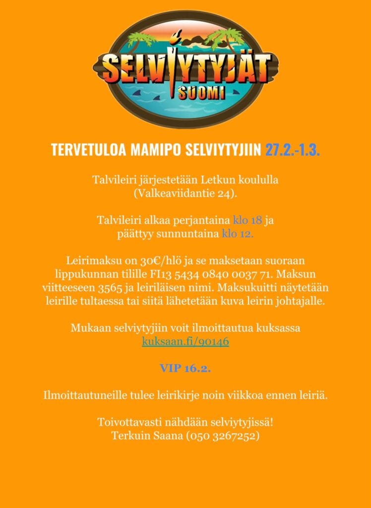 TERVETULOA MAMIPO SELVIYTYJIIN 27.2.–1.3.